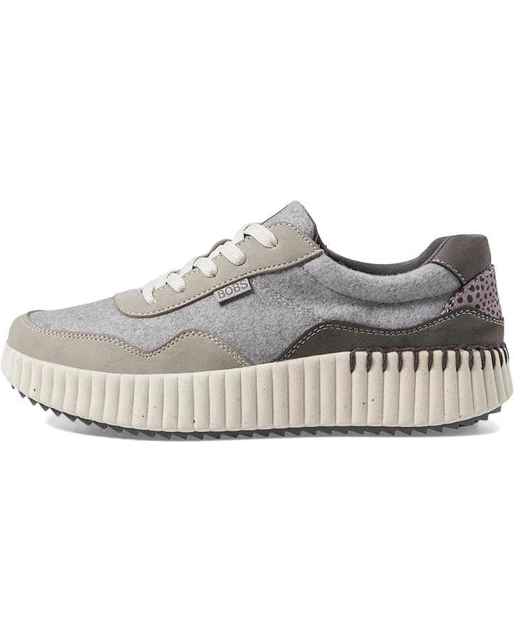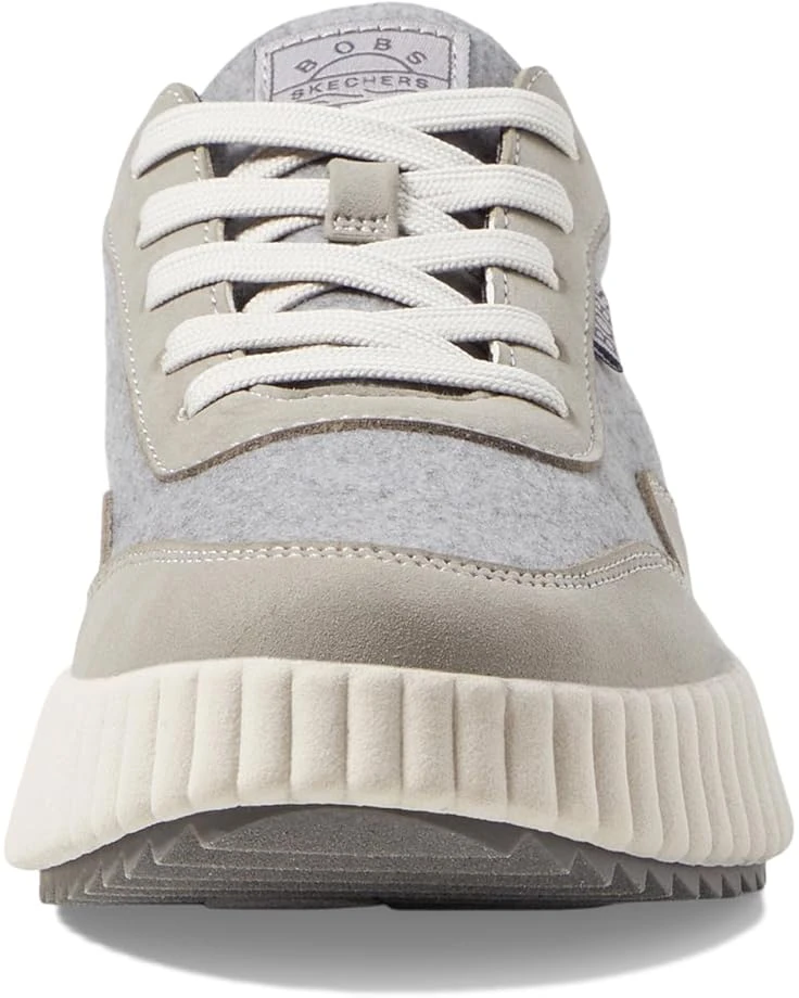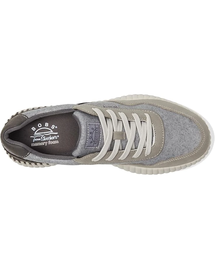 - Cloud comfort, chic design: The BOBS from SKECHERS® Bobs Vista – Cushy Fit. This lace-up faux wool sneaker features durasuede overlays for a trendy, textured look. Lightweight and unlined, it offers breathable wear all day long. Sink into the faux leather insole and memory foam footbed, providing plush cushioning with every step. The synthetic rubber outsole ensures durable traction, while the round toe enhances wiggle room.