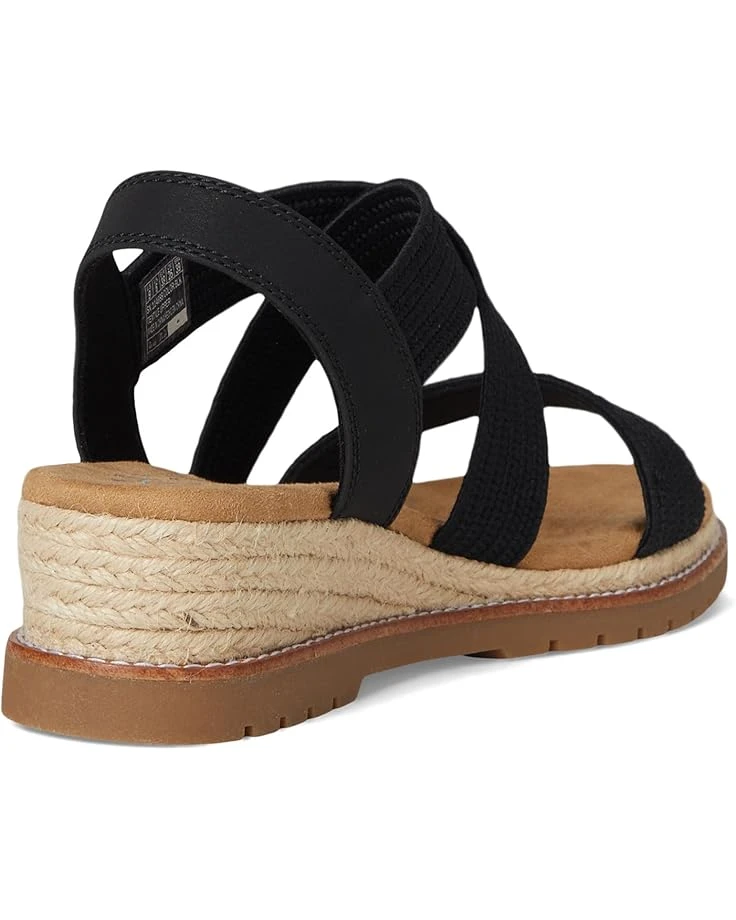 - Relaxed vibes, refined style: Indulge in laid-back luxury wearing BOBS from SKECHERS® Desert Chill – Uptown Haze. Crafted with a chic polyester upper and an easy-to-wear low-profile wedge heel, this sandal is ideal for those relaxed days. The gore multi-strap design offers a secure fit, while the ankle back strap ensures added stability for all-day wear. Featuring a plush Skechers Memory Foam® cushioned footbed, your feet will stay comfortable and supported. The durable rubber outsole adds traction, making it as functional as it is fashionable.