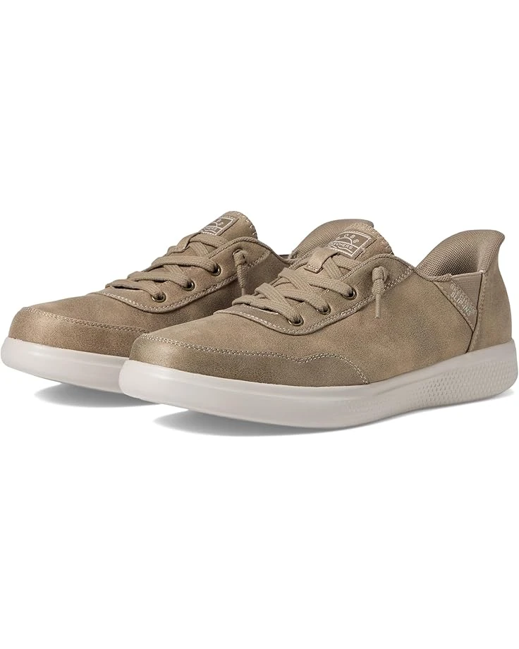 - Flexible, lightweight, and cushioned, the BOBS from SKECHERS® Hands Free Slip-Ins: Skip Cute – B Cute Cozy shoes are a must-have for your everyday wear. The faux leather upper of these sneakers features a faux lace closure. These casual sneakers are crafted with a memory foam footbed that cushions each step. Match your casual outfits and fashionista styles wearing these lace-up sneakers.