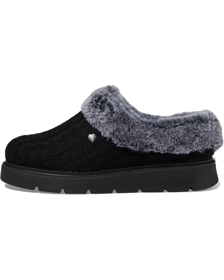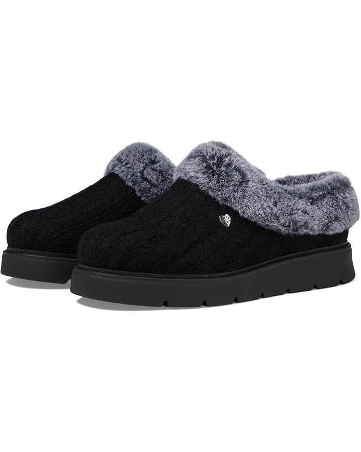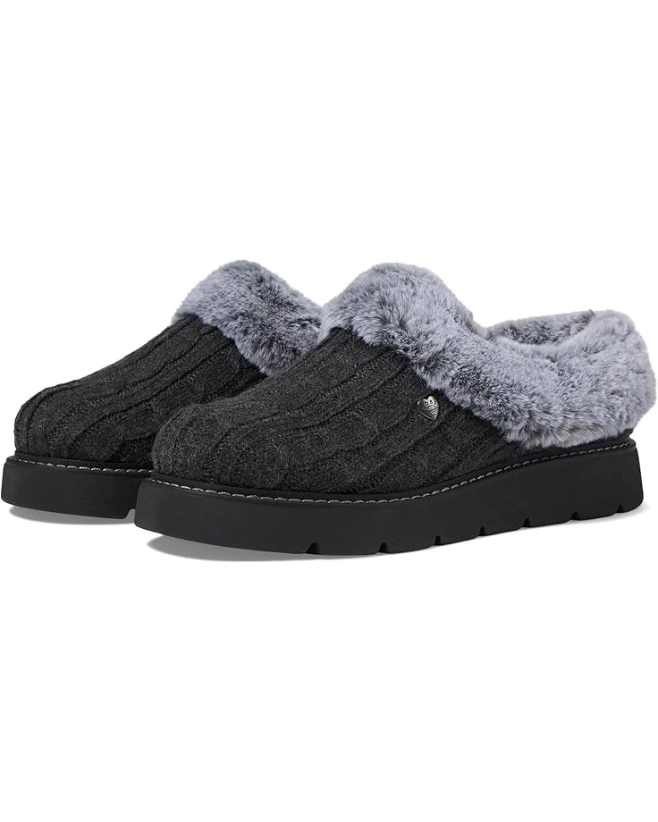 - Featuring a faux fur trim for long-lasting warmth, the BOBS from SKECHERS® Keepsakes Lite – Warm Greetings slippers keep your feet warm and cozy. The memory foam footbed and faux fur lining make them comfortable for all-day wear. Made of a soft sweater knit fabric upper, these cozy slippers are lightweight, flexible, and cushioned.