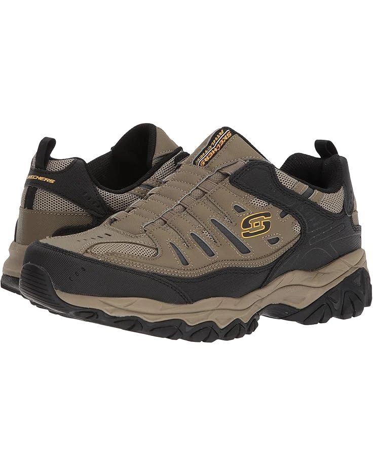 - The SKECHERS® After Burn M. Fit sneaker will enhance each and every walk with a smooth nubuck leather upper, durable synthetic overlays, and cooling mesh panels.