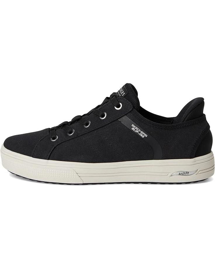 - Upgrade your comfort game: SKECHERSยฎ Arch Fit Arcade-Forever Cozy Hands Free Slip-Ins. Experience ultimate comfort with the PU upper and polyester lining. Slip into effortless style with the innovative Hands Free Slip-Ins design for quick and easy on/off. These sneakers feature a patented Arch Fitโข insole system with podiatrist-certified arch support that provides all-day comfort and reduces foot fatigue. The removable insole molds to your unique foot shape, while the exclusive Heel Pillowโข offers added stability and support.