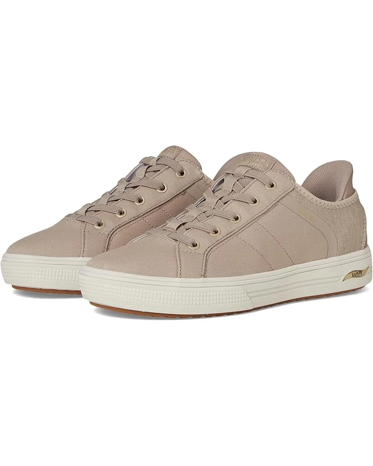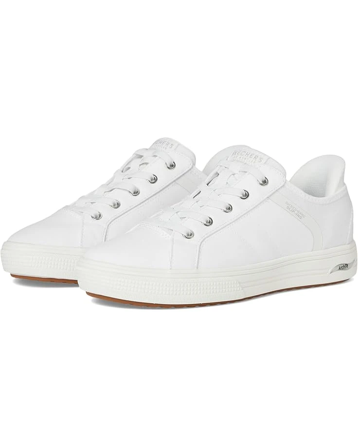 - Say goodbye to sore feet and hello to unmatched comfort choosing the SKECHERS® Arch Fit Arcade sneakers. Featuring stylish cotton upper and cozy polyester lining, these sneakers are perfect for everyday wear. The patented Skechers Arch Fit® insole system provides podiatrist-certified arch support, while the lightweight cushioned midsole offers superior comfort and support.