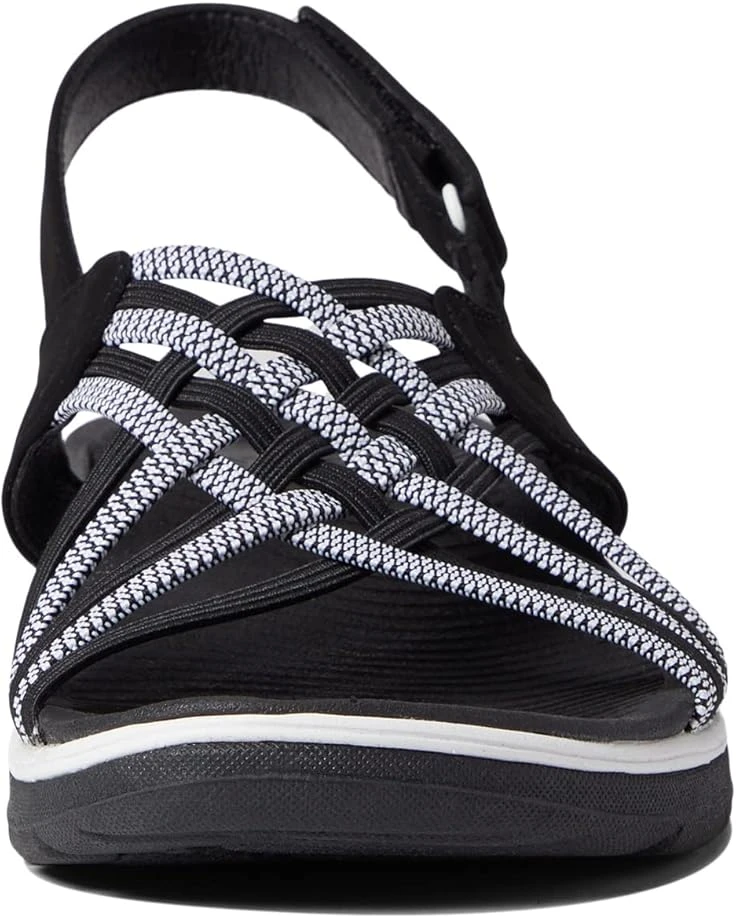 - Stretch fabric strap upper with an adjustable sling-back strap closure.