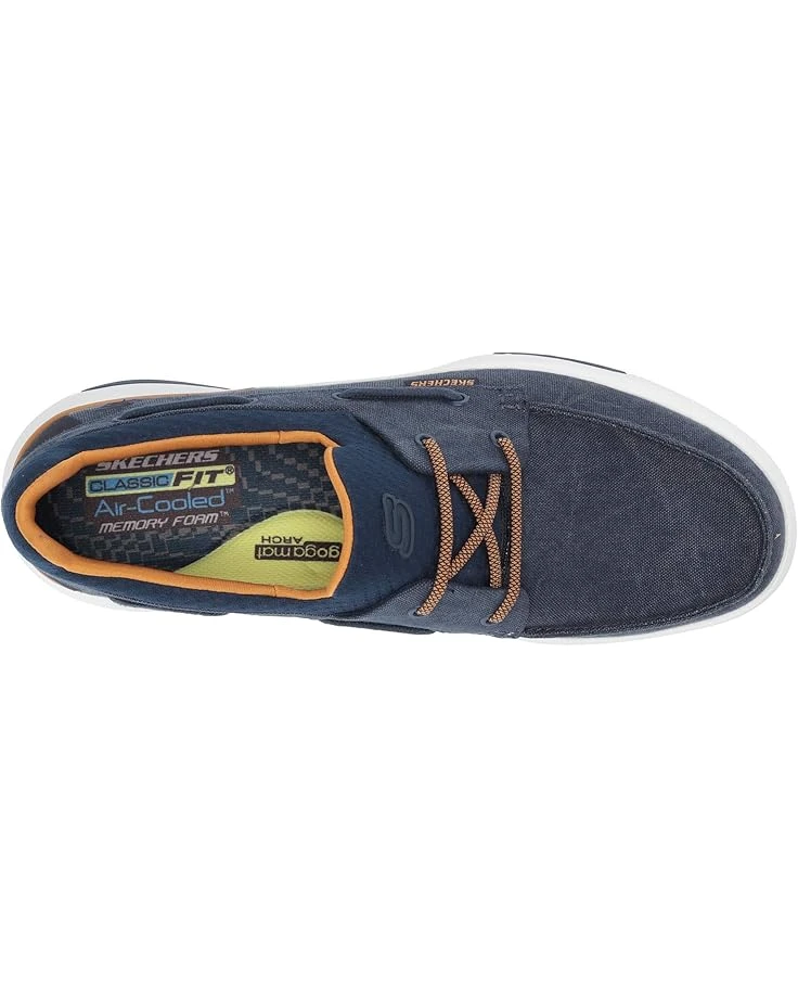 - The SKECHERS® Bellinger – Garmo loafer is a great weekend-ready style with a durable woven canvas upper, a slip-on construction with a front laced panel, and optimal comfort features.
