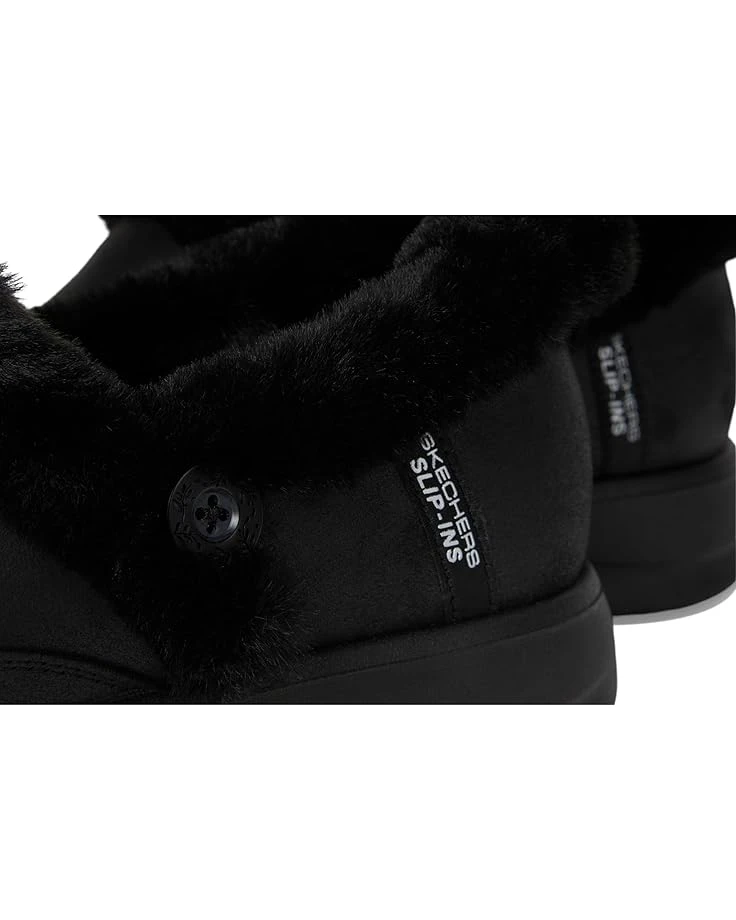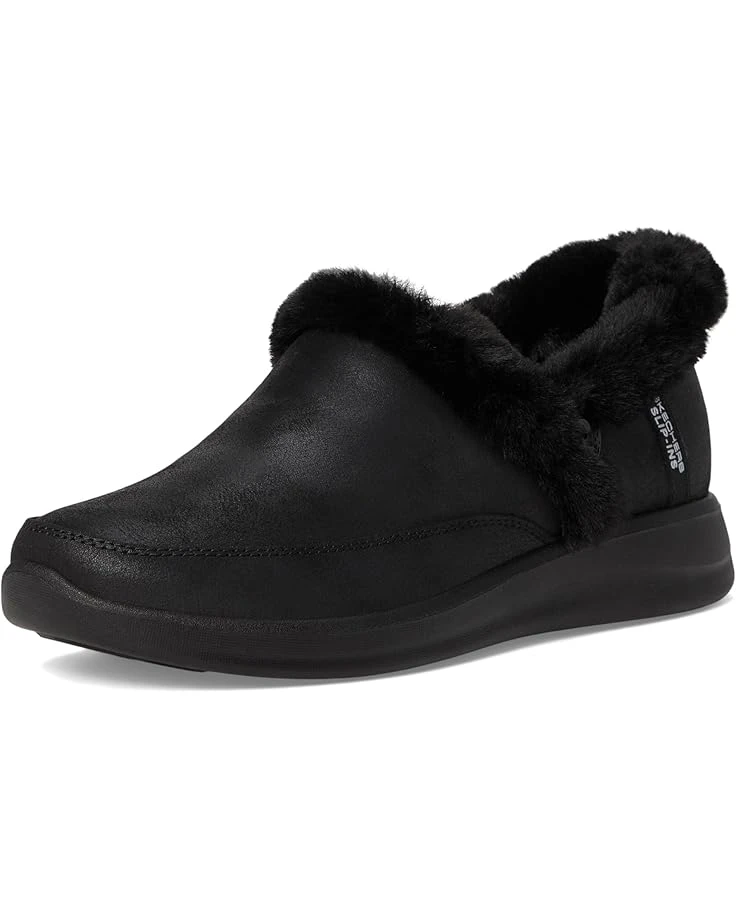 - Find your feet’s perfect match with the SKECHERS® Cozy Escape – Hands Free Slip-Ins. Crafted from faux suede upper, faux-fur lining, trim, and memory foam cushioned comfort insole, this pair of slippers features round toe, exclusive heel pillow that holds your foot securely in place, and treated with 3M scotchgard to resist water and stains.