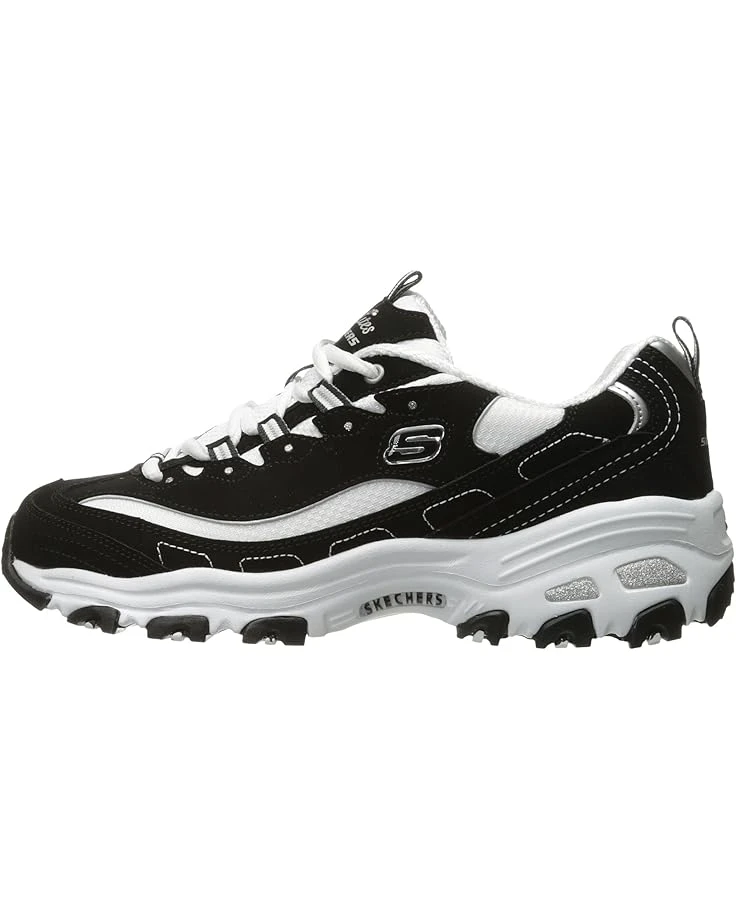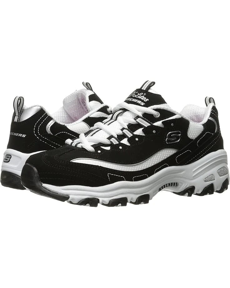 - The SKECHERS® D’Lites – Biggest Fan sneaker offers a classic design and lasting comfort with an athletic-inspired silhouette, mesh fabric panels for cooling, and comfortable padding at the tongue and collar.