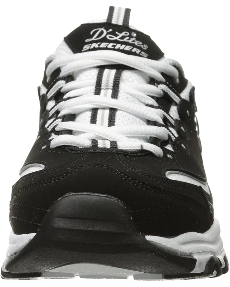 I wear the D’Lites daily. They are very comfortable. Bought because I needed new shoes. My last pair of D’Lites are still in good condition but I have had them quite a while and wanted new shoes. I have tried paying dearly for orthopedic shoes but always come back to the Skechers. The fit and feel are perfect for my feet. I know I can order online and be certain the Skechers will fit. I also love the black color. They are very stylish.