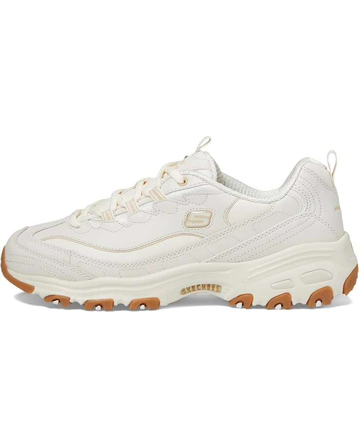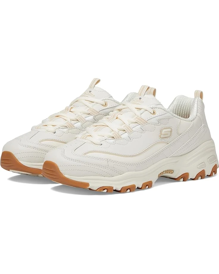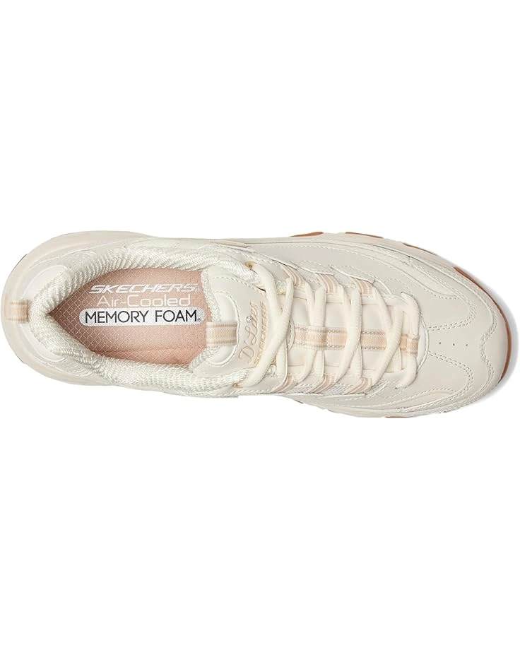- Designed to offer maximum comfort, the SKECHERSยฎ D’Lites-Good Neutral shoes are a perfect addition to your sneaker collection. The low-top sneakers have a round-toe design, lace-up closure for a custom fit, and ankle and tongue pull-on tabs for easy donning and doffing. The shoes have a layered quarter overlay upper with removable Skechersยฎ Air-Cooled Memory Foamยฎ cushioned comfort insole, comfortable lining, and lightweight shock-absorbing supportive midsole.