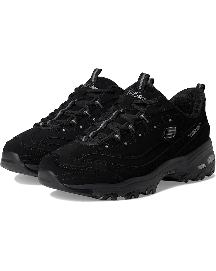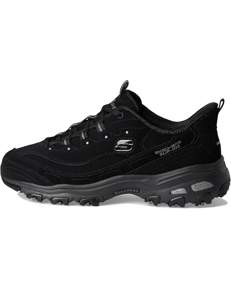 - The SKECHERS® D’Lites Hands Free Slip-INS shoes are comfortable and cushioned sneakers that feature a rubber upper, making them a great choice for your outdoor rides and adventures. They are made of an Air-Cooled memory foam insole that provides cushioned comfort. The lace-up closure of these shoes ensures a secure fit while the pull tabs at the front and back offer easy wear.