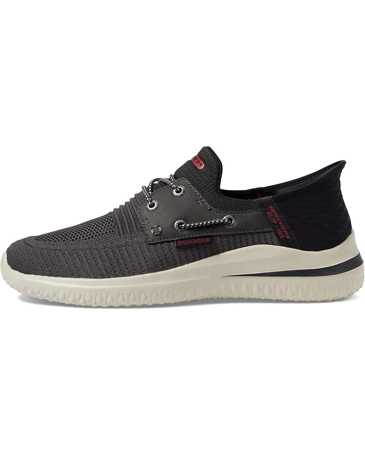 - The SKECHERSยฎ Delson 3.0 Roth Hands Free Slip-Ins offer optimum breathability to the feet with engineered mesh detailing and eyelets lined with fixed laces.