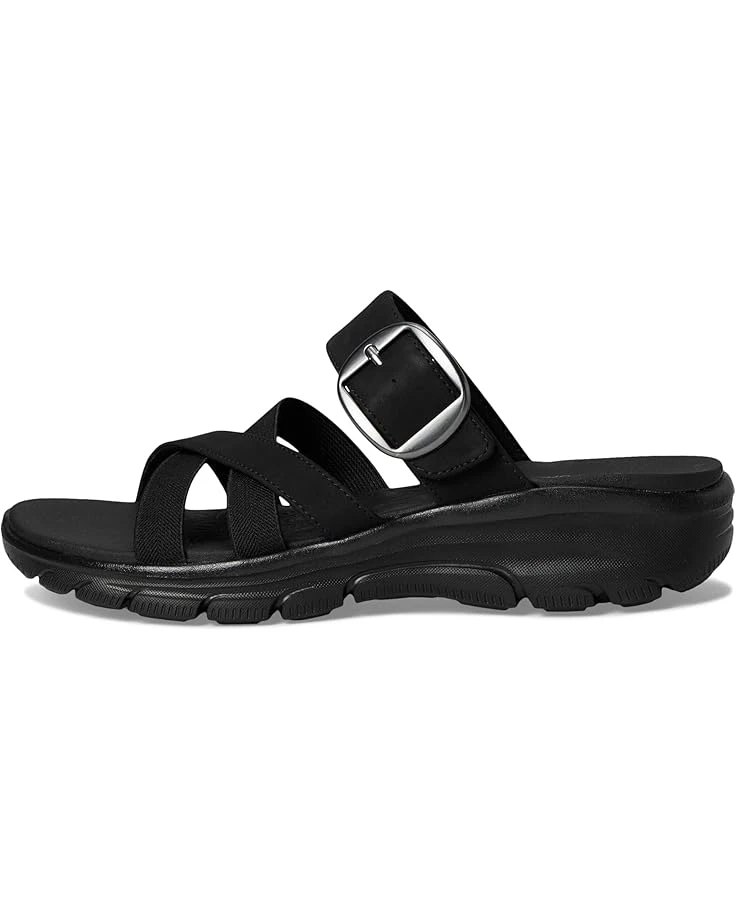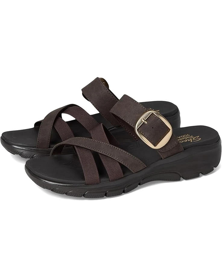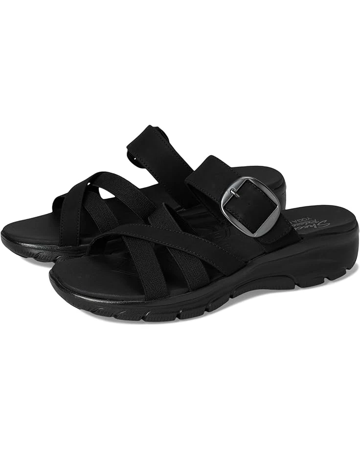 - Head on for explorations in boundless comfort wearing the water-resistant SKECHERS® Easy Going – Perfect Company Sandals. Crafted with vegan materials, the slip-on slides are designed with a double-band knit leather upper, leather lining, and a Yoga Foam® cushioned comfort footbed. The adjustable buckle closure ensures a custom fit.