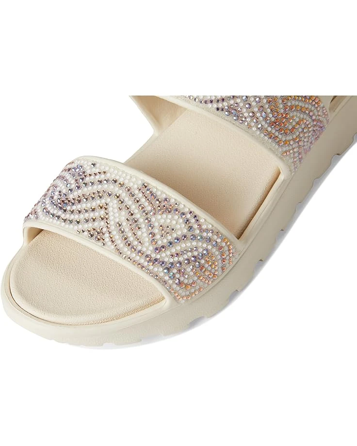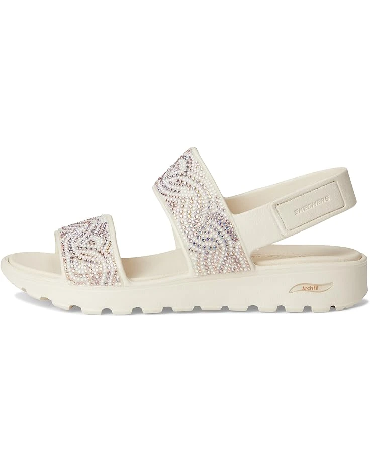 - Shine, stride & sparkle in the SKECHERSยฎ Foamies Arch Fit Footsteps Double Band with Rhinestones. Designed with a lightweight EVA upper, insole, and outsole, these water-friendly sandals let you shine from beach days to brunch. The double-band design is adorned with dazzling rhinestones, adding a touch of glamor to every step, while the adjustable hook-and-loop ankle strap ensures a secure fit. Experience next-level support with the Arch Fitยฎ footbed, offering podiatrist-certified arch support for all-day comfort.
