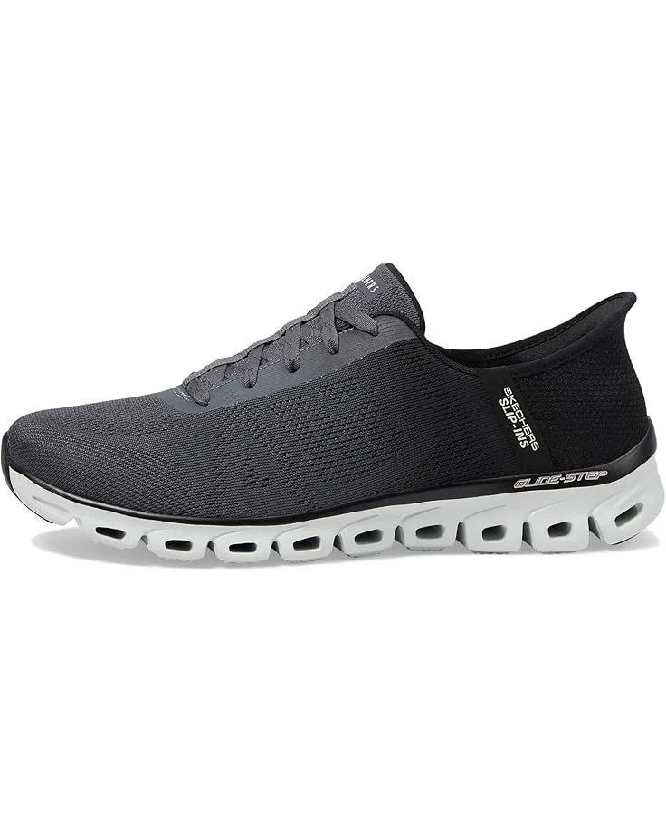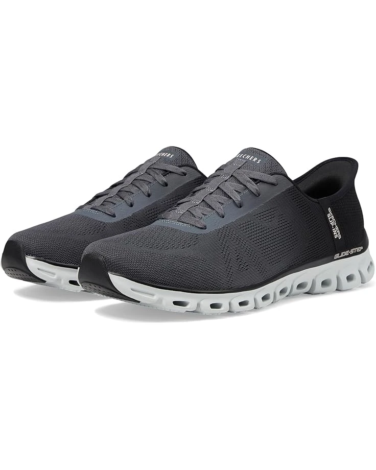 - Slip into long-lasting comfort and support wearing the SKECHERSยฎ Glide Step Excite Hands Free Slip – INS. The rubber upper of these sneakers features a lace-up closure for a secure fit. These shoes come with a rubber insole that cushions each step. Machine washable and comfortable, these lace-up sneakers are perfect for your everyday runs and workout sessions.