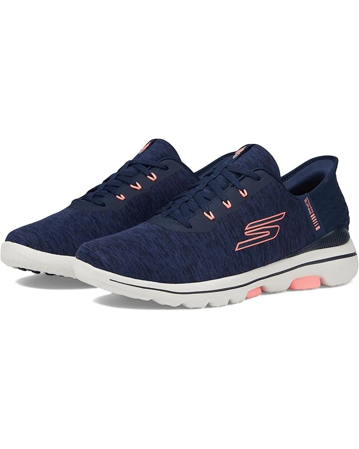 - With the Skechersยฎ GO GOLF Go Golf Walk 5 Hands Free Slip-Ins you are ready for both casual running sessions or outdoor adventures. These sporty sneakers come with a water-repellant membrane, heathered jersey upper, fabric lining for breathability, and removable Gogamax footbed. These feature a round toe shape, lace-up closure, and brand logo detailing on the side panel for authenticity.