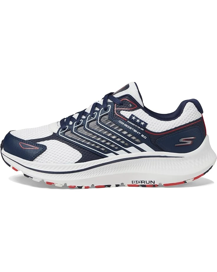 - Run with the stars and stripes in comfort wearing Skechers GO RUN Consistent 2.0โข – Americana. Crafted for both style and performance, this American themed running design features a lace-up breathable mesh and leather overlay upper with responsive ULTRA LIGHT midsole cushioning and a high-rebound Skechers Air-Cooled Goga Matโข insole.