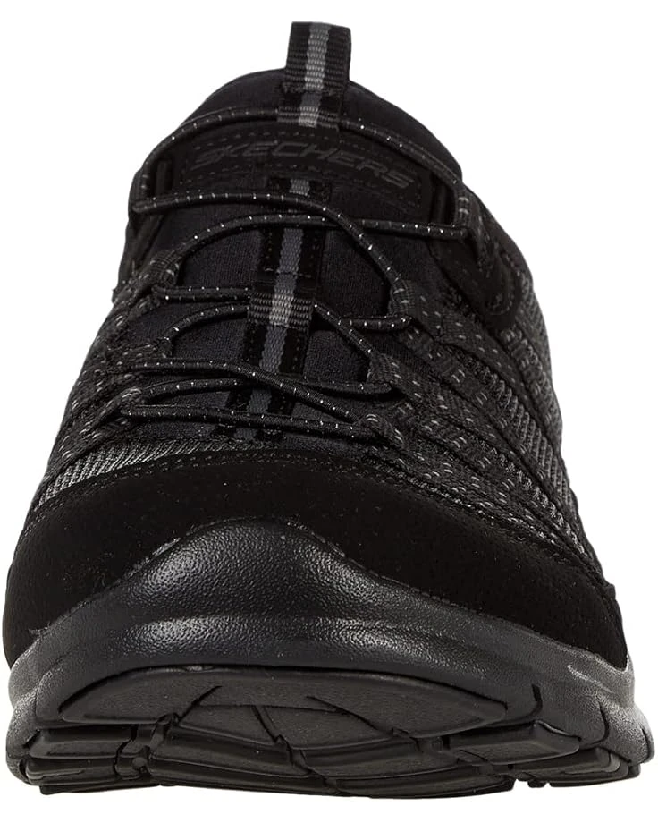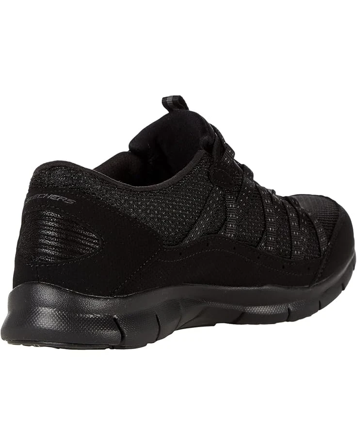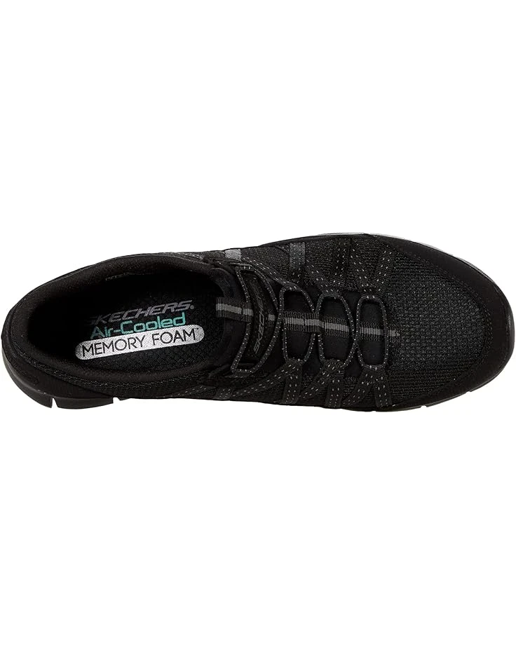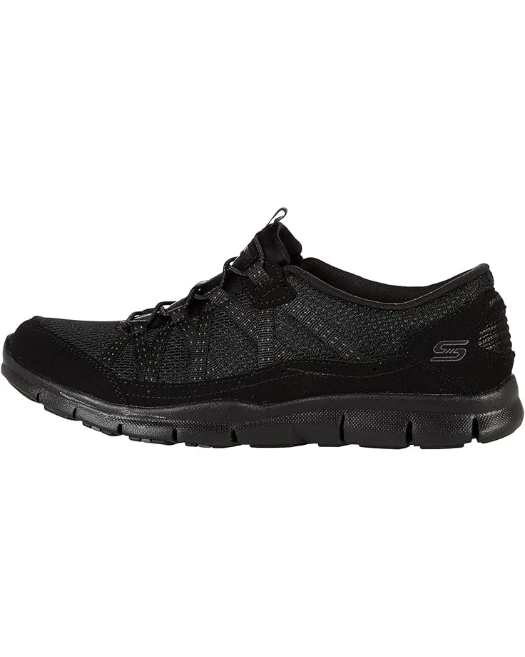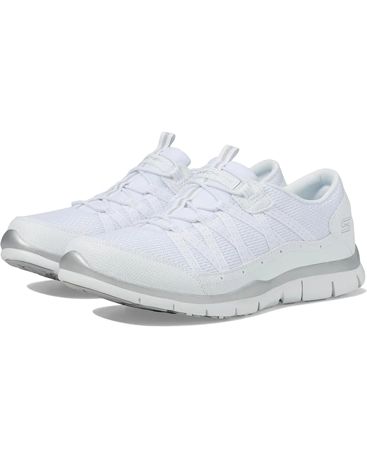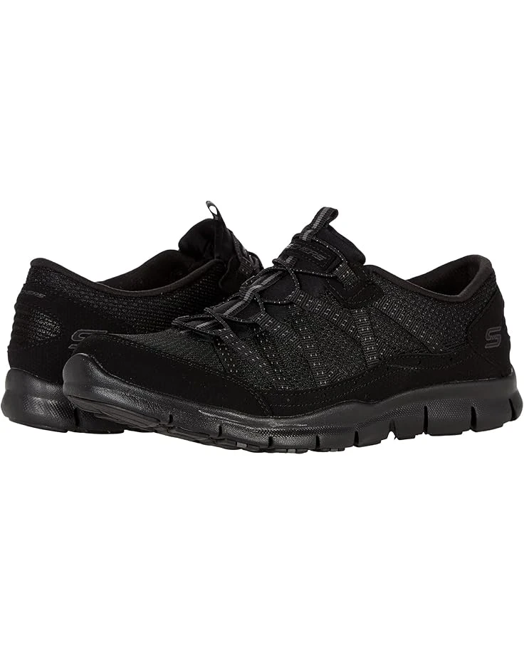 - The SKECHERS® Gratis – Strolling sneaker will invigorate your casual style with a perforated synthetic and cooling mesh upper, slip-on styling, and a bungee laced front panel for a secure fit.