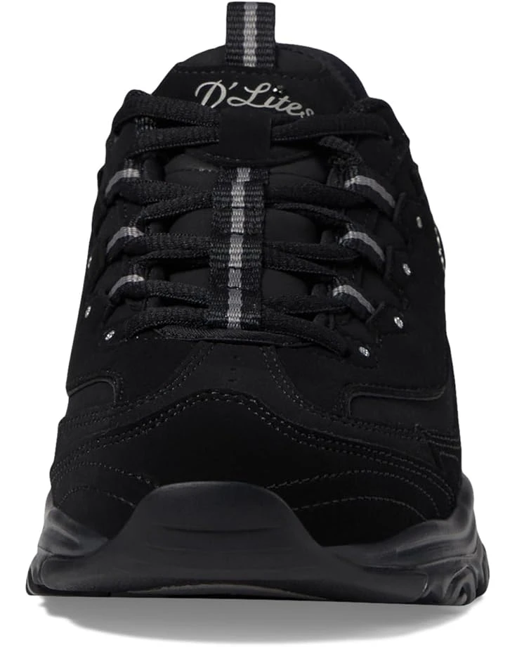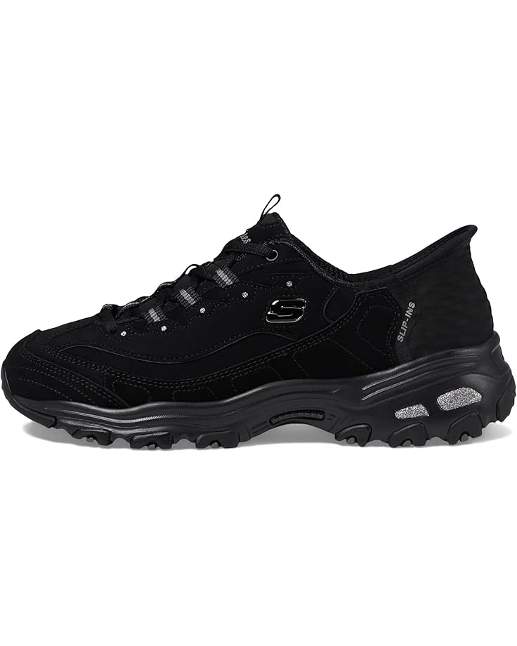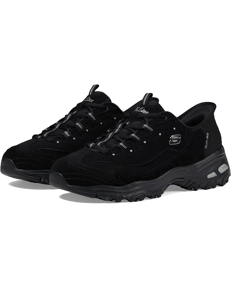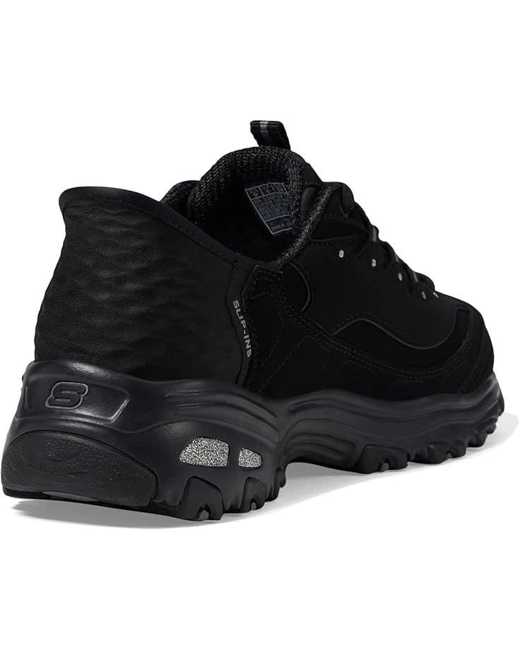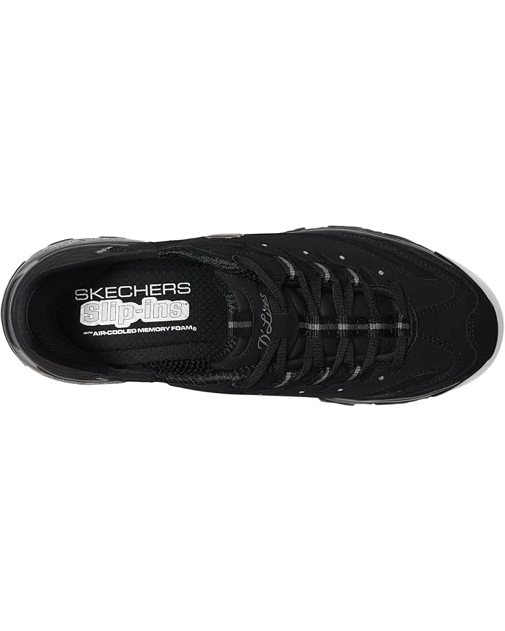 - Step up your style game sporting the Skechersยฎ Hands Free Slip-Ins D’Lites: Leather upper luxury, unlined comfort, and rubber outsole grip. Embrace modern convenience in iconic Skechers fashion. Featuring a molded Slip-insยฎ heel, Heel Pillowโข, Air-Cooled Memory Foamยฎ, and a lace-up leather and mesh combo.