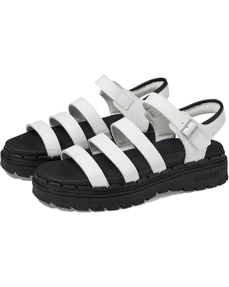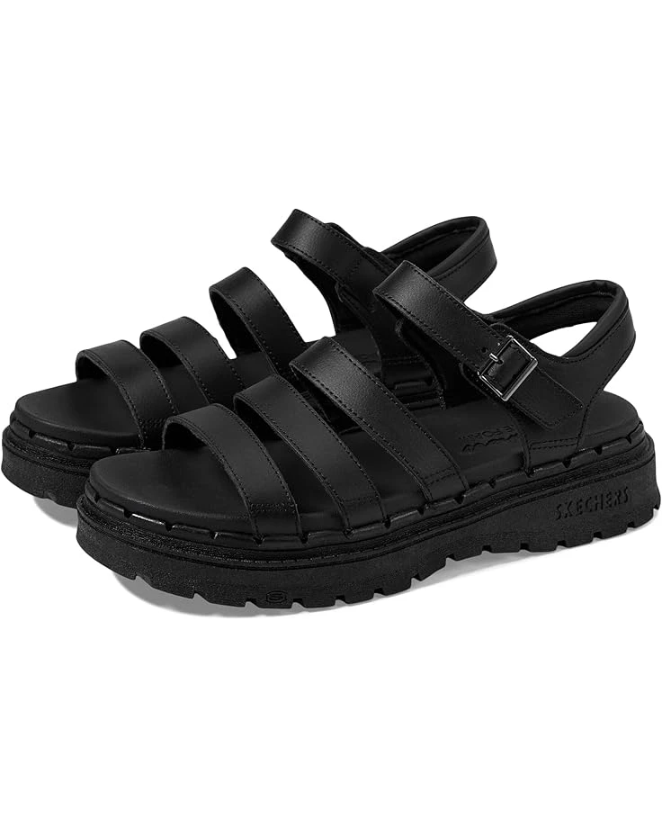 - The SKECHERSยฎ Jammers – Poppin’ sandal will elevate your casual style with a strappy silhouette, open toe, and an oiled matte leather upper.