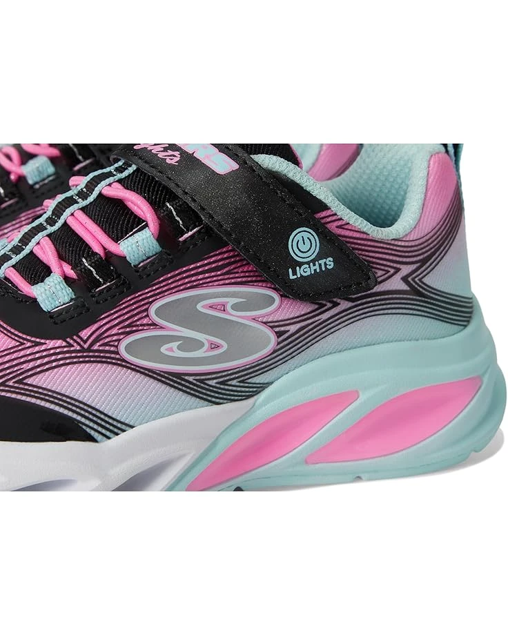 - Bring the fun in sporty fashion wearing the SKECHERSยฎ KIDS Cosmic Glow 303712. This active multi-colored lights design features an Ombre mesh and synthetic upper with bungee laces, adjustable instep strap, and well-cushioned light-up midsole. It also comes with easy on, easy off Adaptive Closure for a customized fit, and cushioned comfort insole.