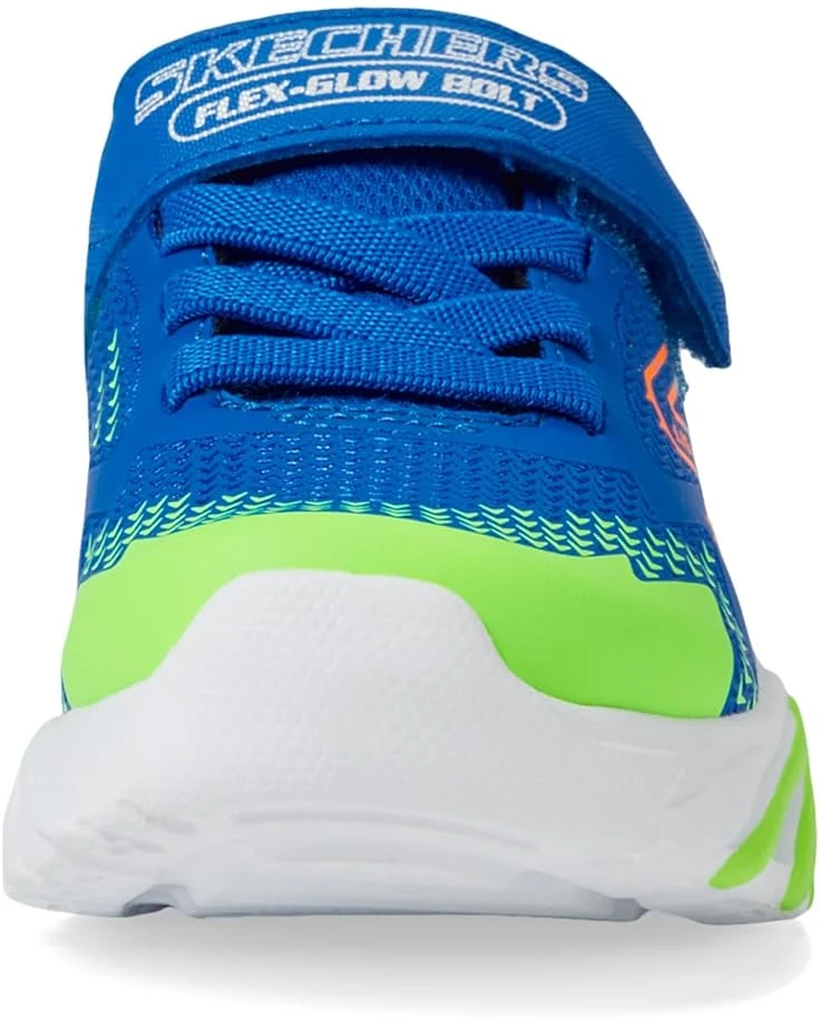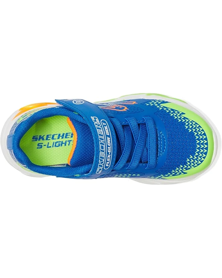 - Let your little one ace the casual yet sporty look wearing SKECHERS® KIDS Flex-Glow Bolt 400138L Sneakers that feature a round toe shape and lace-up detailing with hook-and-loop tab. The sneakers come with a synthetic upper, polyester lining, and removable cushioned comfort insole. The lighted details on the outsole elevate the overall look.