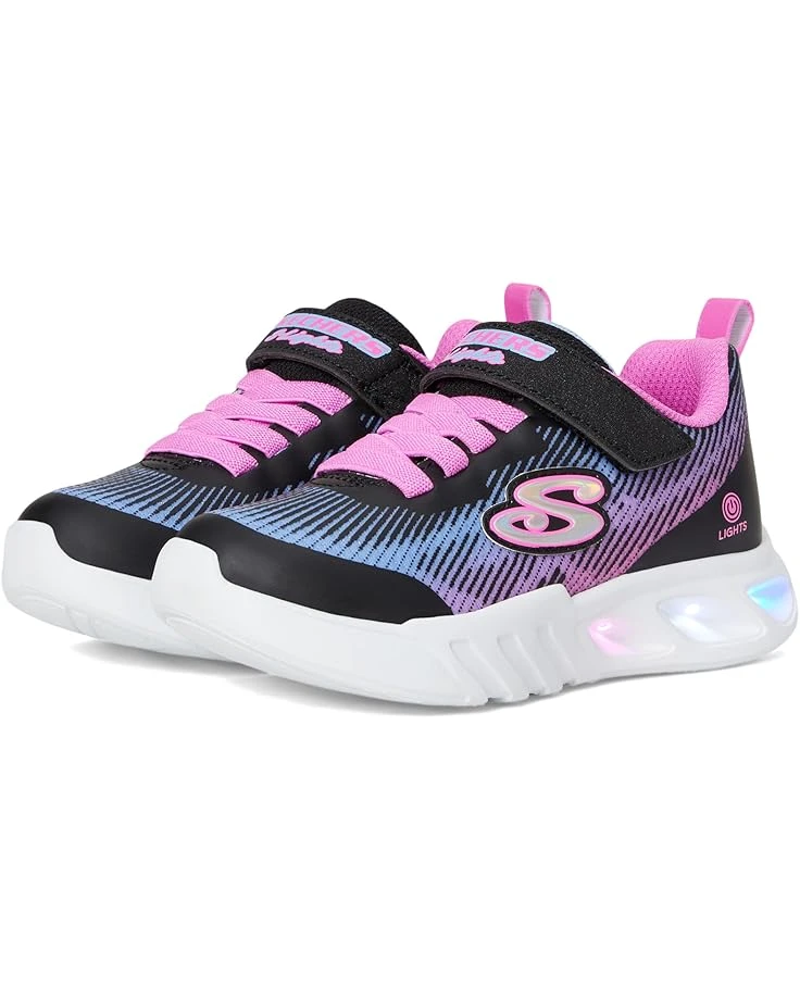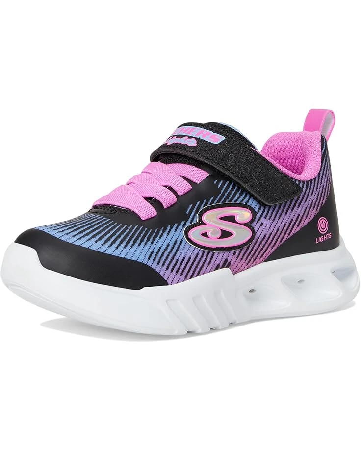 - Dazzle your steps in style and comfort with SKECHERSยฎ KIDS Flicker Flash – Light Takeover 303704L Sneakers. This lighted sneaker features a multi-trim synthetic upper with a gore, strap closure, lace-up details, and an on/off lighted button. The low-top design with cushioned comfort insole lets you enjoy a seamless stride. The ankle pull tab is designed for donning & doffing and the brand logo detail on the side adds an authentic touch.