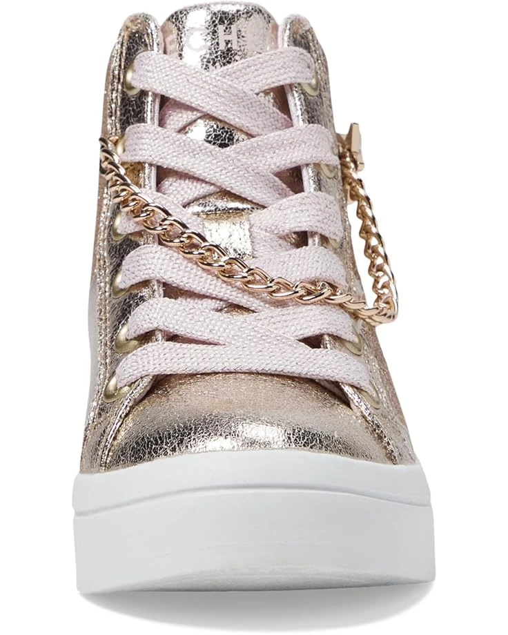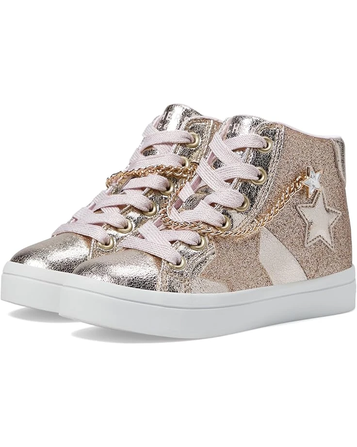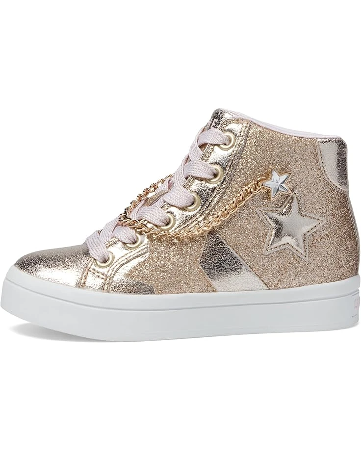 - Let your kid roam around the home by wearing SKECHERS® KIDS Hi-Lite 310042L sneakers. The high-top shoes have lace-up closure. A polyurethane upper has metallic finish. The shoes are made of polyester lining and removable polyester insole. Starry details make the shoes playful for little steps. A heel pull-tab and padded collar provide convenience.