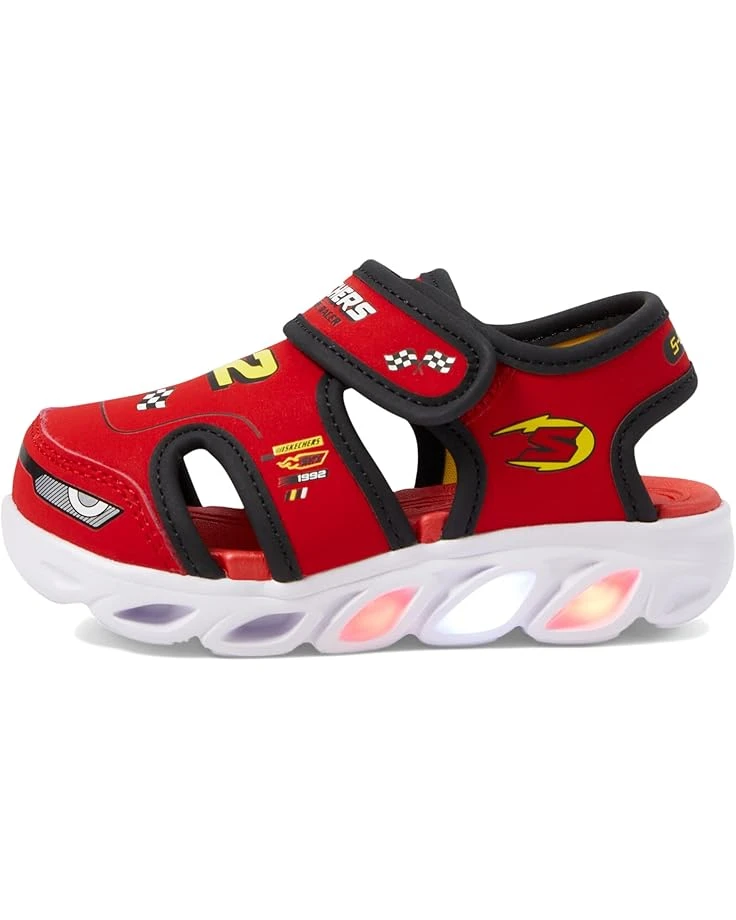 - Bring a seamless allure of subtle luxury to your kiddo’s feet by opting for the SKECHERS® KIDS Hypno-Splash – Hydro-Fun 400612N Active Sandals. Featuring a light-up fisherman thematic design, the footwear has EVA upper with adjustable hook-and-loop strap and closed round toe silhouette.