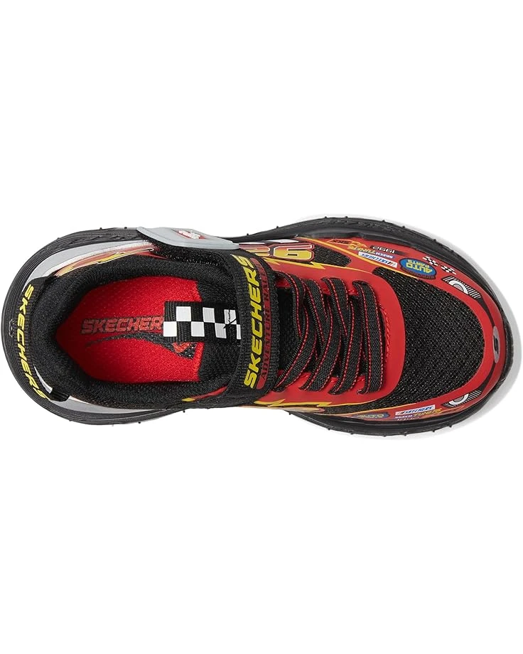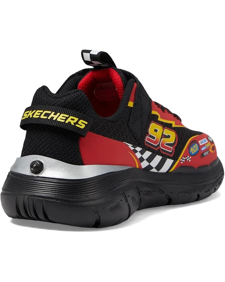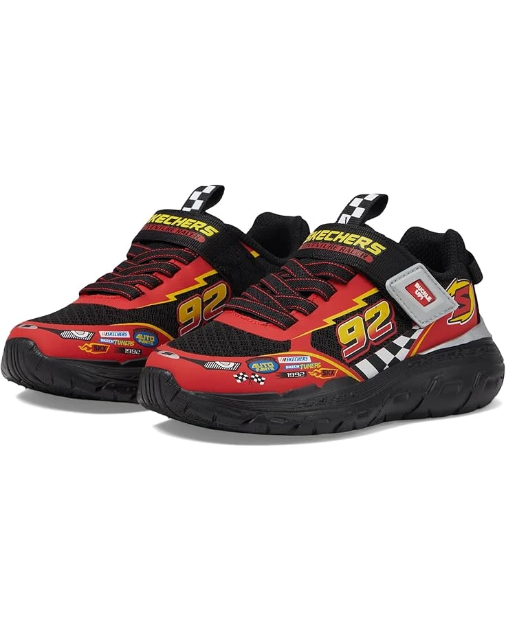 - Add a bit of color to your little one’s look by choosing the SKECHERSยฎ KIDS Skech Tracks 402303L. The sneakers have Synthetic and mesh upper breathable textile lining, and a removable, cushioned comfort insole. They are adorned with a construction vehicle or race car-themed design.