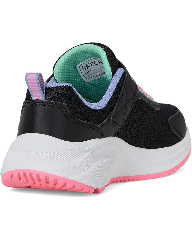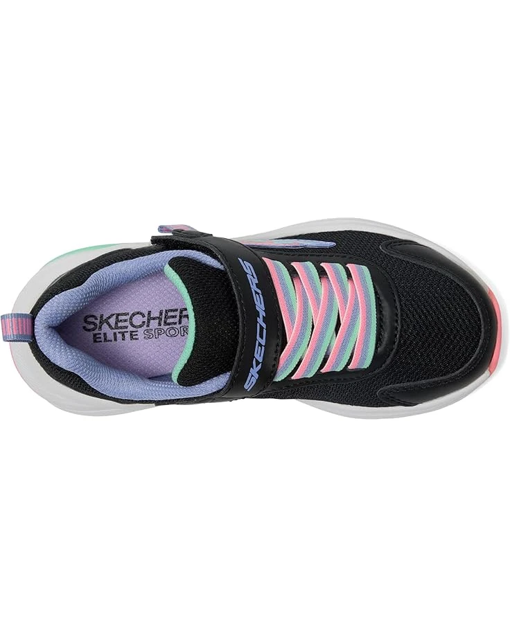 - Ready, set, shine sporting the SKECHERSยฎ KIDS Elite Sport Tempo – Speed Seeker! This vibrant sneaker blends style and comfort with its sparkle mesh upper and synthetic overlays. Stretch laces and an adjustable instep strap make for an easy, secure fit, while the marbleized shock-absorbing midsole and durable rubber traction outsole ensure all-day play. Featuring Skechers Adaptive Closure for quick on-and-off convenience, this sneaker lets kids stay active in ultimate comfort. Finished with a pop of color in the midsole paint and the iconic Skechers logo, it’s perfect for little adventurers who love to move in style!