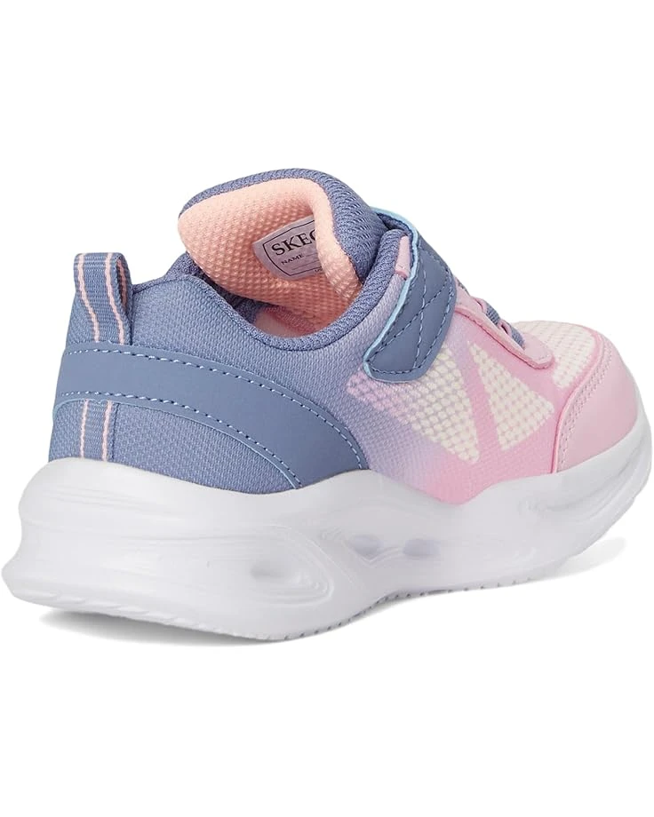 - Light up every step with style and comfort! The SKECHERSยฎ KIDS Sola Glow 303714N is the perfect blend of fun and function. Featuring a vibrant ombre mesh and synthetic upper, these shoes are designed to stand out. The lighted gore and strap bring a dazzling glow with every move, making them extra fun for kids on the go. The shock-absorbing sculpted midsole ensures support with each step, while the cushioned EVA insole provides all-day comfort. Easy to wear with its pull-on lace design, these shoes offer a snug fit and the durability of a nylon lining and outsole for endless adventures.