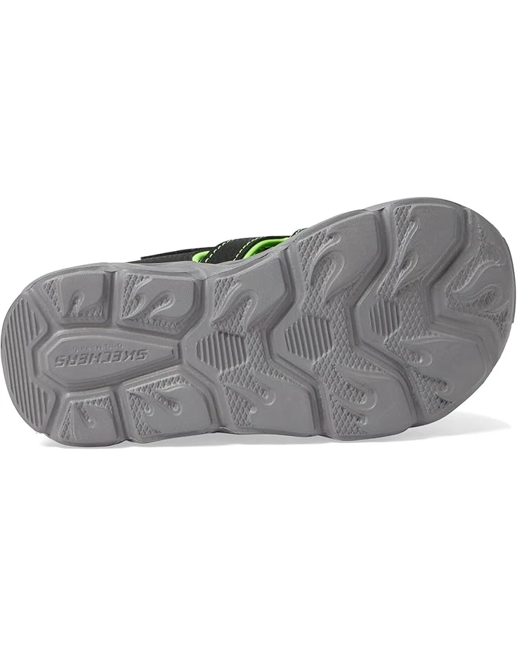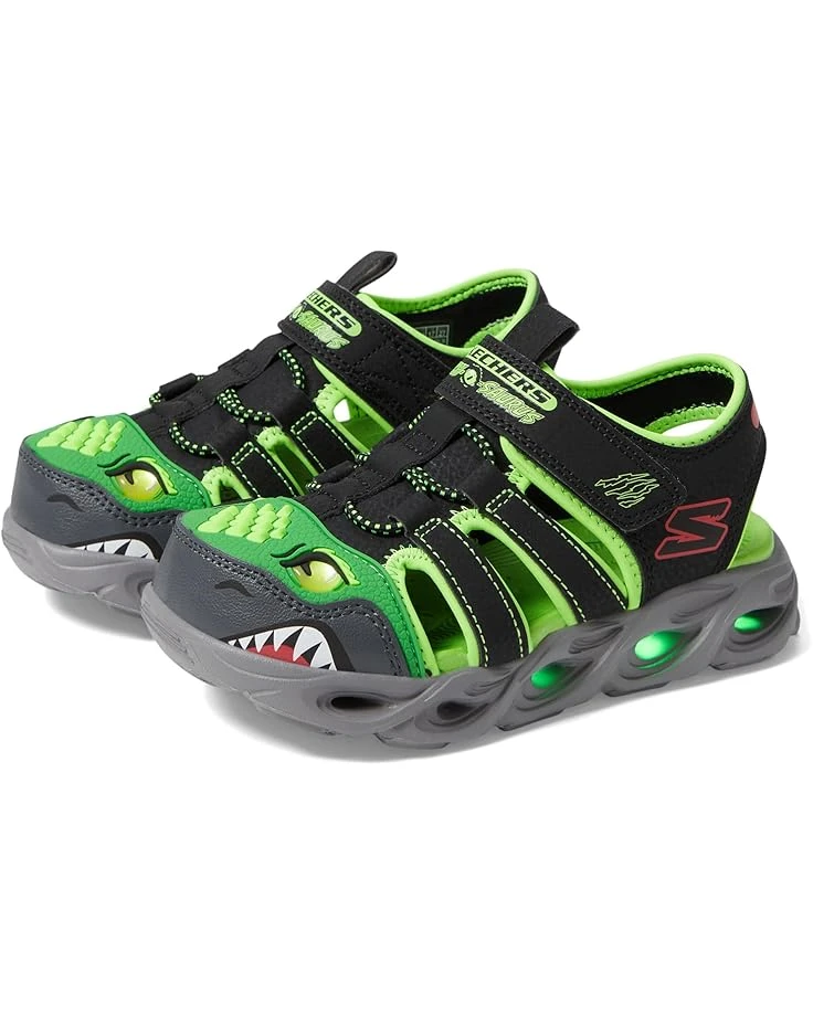 - Designed with a unique dinosaur theme design, the SKECHERS® KIDS Thermo-Splash – Hydro-Flare 400613L sandals will become your kid’s favorite. The comfortable and lightweight EVA upper of these sandals features a cut-out design and an adjustable hook-and-loop strap that offers a secure fit. These kid’s sandals come with an EVA insole and polyurethane lining. Offering easy on and off, these light-up sandals for kids are an ideal choice for outdoor rides and adventures.