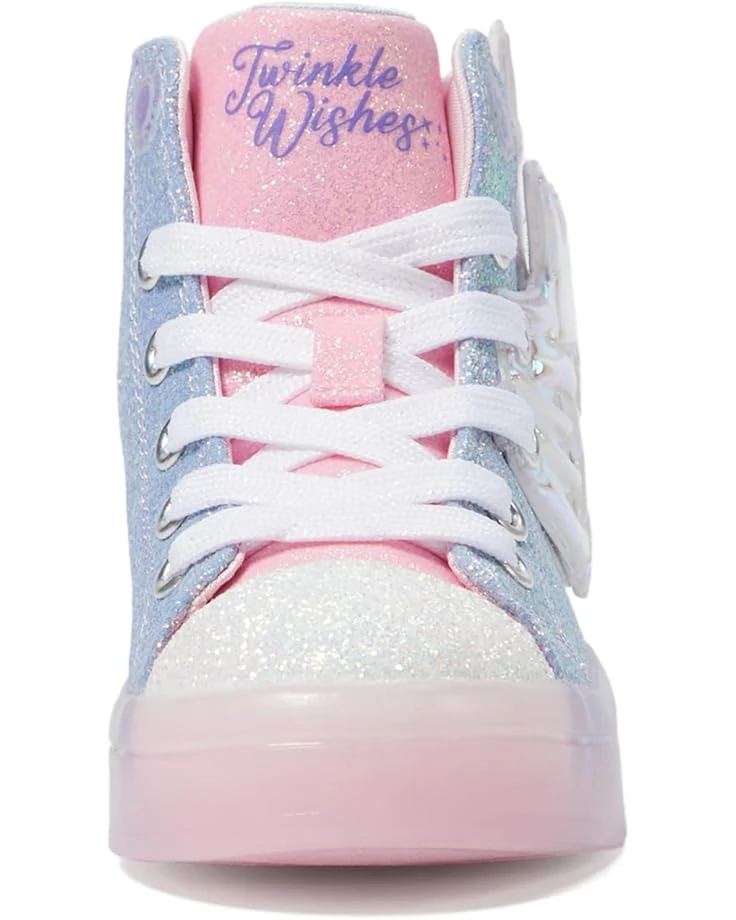 - Sprinkle magic with every step! Step into a world of fairy dust fun with SKECHERS® KIDS Twi-Lites 2.0 – Magical Wish. Featuring a sparkling synthetic glitter finish canvas upper and a light-up shooting star detail, these high-tops bring joy to every adventure. The step-activated sounds and lights, combined with a comfortable nylon lining, EVA insole and outsole, ensure all-day enchantment and support. Perfect for bigger kids, these shoes come with an on/off button for the lights, making them as practical as they are magical. Lace up and let the magic begin!