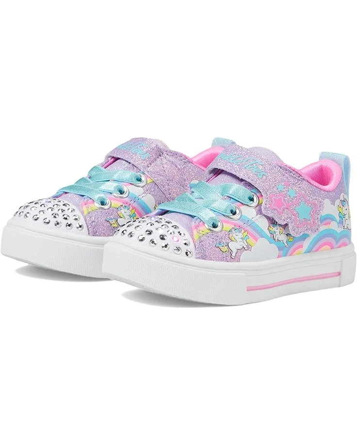 - Let your little one step into fun wearing the funky SKECHERS® KIDS Twinkle Sparks 314809N. Crafted from synthetic upper, this pair of colorful shoes features round toe design, slip-on style with lace detailing and hook-and-loop closure.