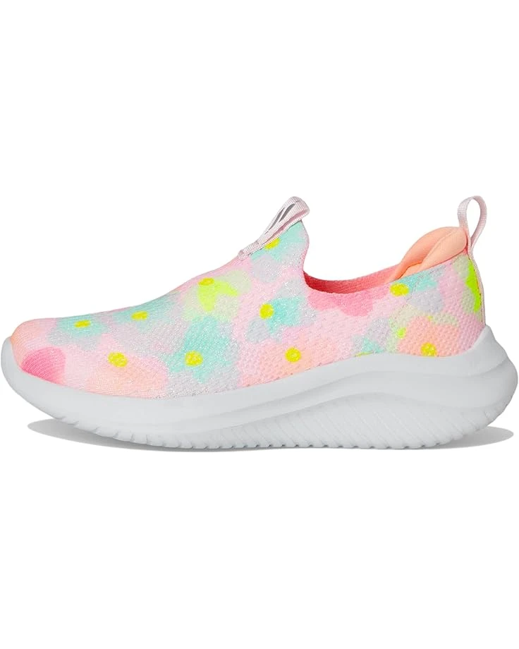 - Let your kiddo celebrate life in full color wearing the SKECHERSยฎ KIDS Ultra Flex 3.0 – Floral Fab 302269L Trail Running Shoes. This pull-on footwear features a Stretch Fit sparkle floral print upper that adds a fun and vibrant touch to their outfit. The Skechers Air-Cooled Memory Foamยฎ cushioned insole ensures all-day comfort. They are also machine washable, ensuring easy care and maintenance. With Skechers Adaptive Closure and a stretch knit design, these shoes provide a secure and flexible fit.
