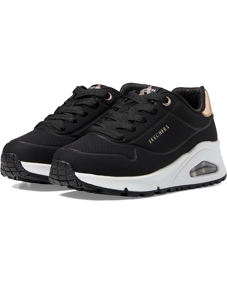 - Give your feet a more relaxing walk by donning the SKECHERSยฎ KIDS Uno Gen1 – Shimmer Away! Elevate your sneaker experience with metallic trim, Skechers air-cooled memory foamยฎ insole, and a visible skech-airยฎ airbag midsole. The rubber insole ensures lasting comfort, while the iconic Skechers logo adds a touch of trendy flair.