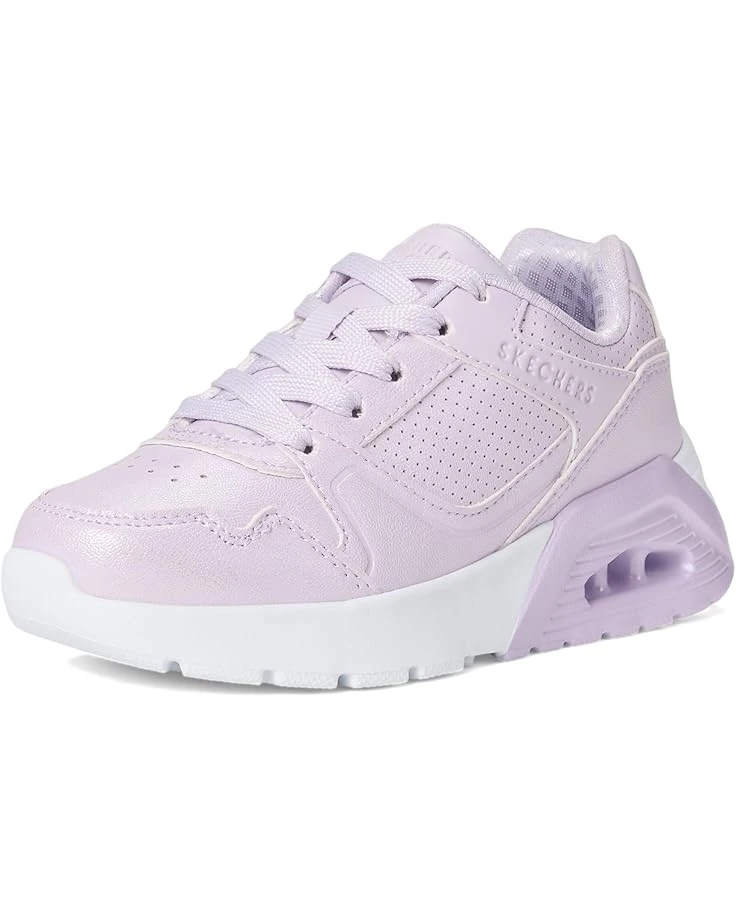 - Level up your sneaker game with cushioned comfort wearing SKECHERSยฎ KIDS Uno Lite 2.0 310430L Sneakers. This low-top, lace-up fashion sneaker features a shimmered synthetic leather upper with a quarter perf detail, cotton lining, Skechersยฎ Air-Cooled Memory Foamยฎ insole, and a platform wedge cushioned midsole.