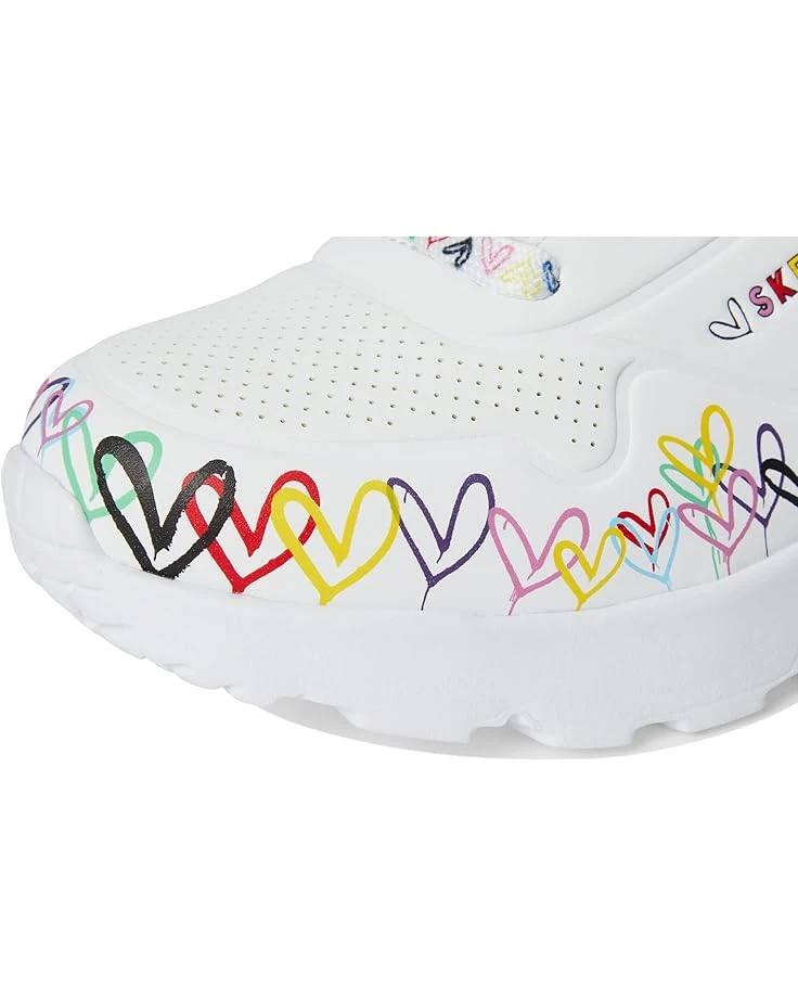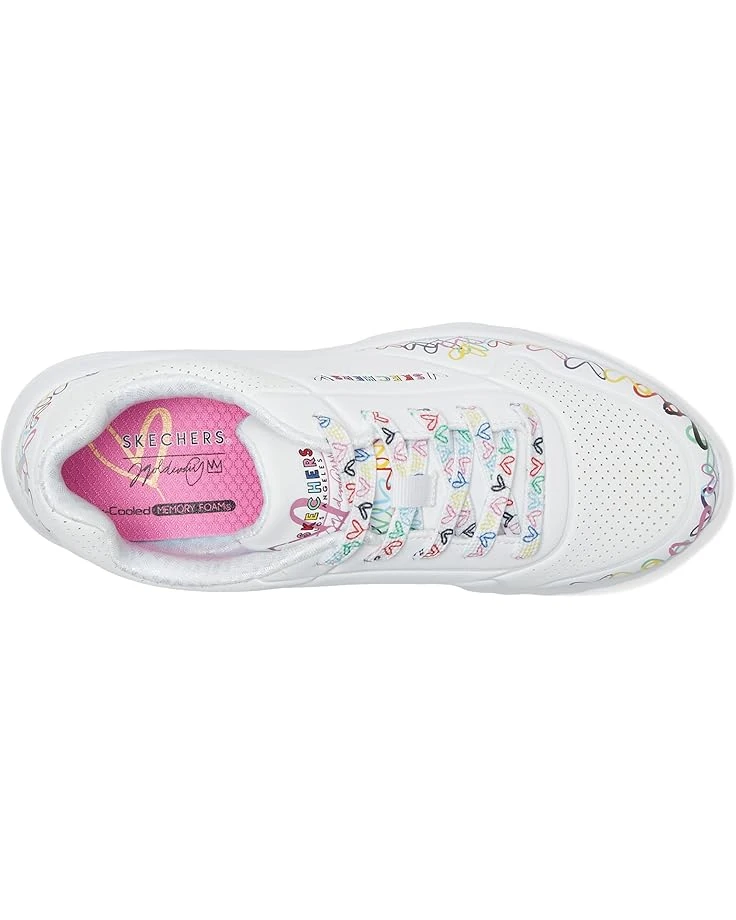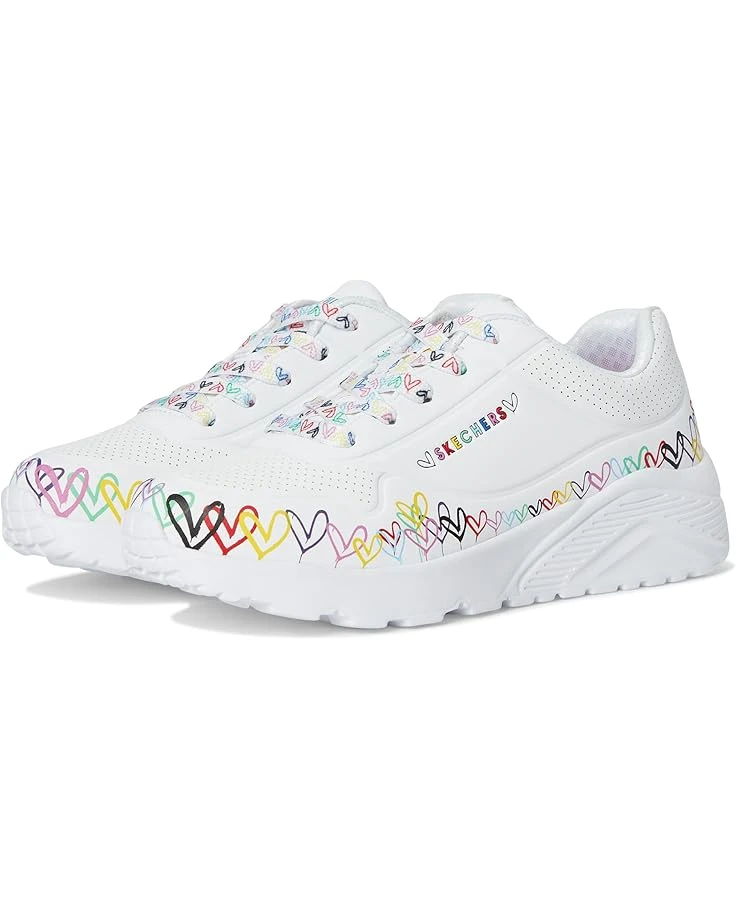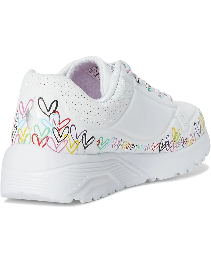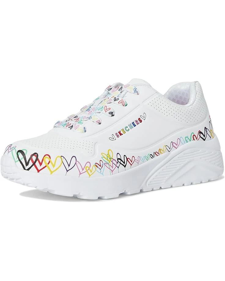 - Let your little one show their creative style wearing the SKECHERS® KIDS Uno Lite 314089L. This lace-up fashion sneaker features a print of the artist’s signature graffiti heart design, a synthetic leather and perforated trim upper, Skechers Air-Cooled Memory Foam® insole, plus a platform wedge midsole. It comes with round toe, Skechers and JGoldcrown logo details, and brand detailing on the tongue, sides, and footbed.