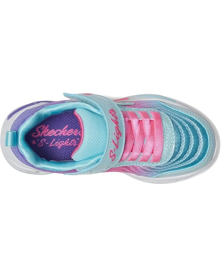 - Featuring a lighted midsole with an on/off button, the SKECHERSยฎ KIDS Wavy Beams – Ombre Express 302327L shoes will become your kid’s favorite. The mesh and rainbow foil glittery upper of these sneakers is styled with a lace-up closure and an adjustable instep strap for a secure fit. These light-up sneakers come with a cushioned comfort EVA insole and nylon lining for all-day comfort. Lightweight and colorful, these lace-up sneakers are perfect to light up your kid’s steps with sporty style.