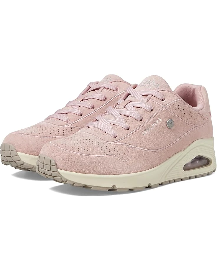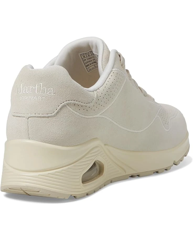 - Step into style and comfort wearing the SKECHERSยฎ Martha Stewart – Uno-county Line! These trendy sneakers feature suede leather upper with perforated details for a chic look. Stay cozy with the polyester lining and enjoy all-day comfort with the Skechers Air-Cooled Memory Foamยฎ cushioned insole. The Skech-Airยฎ visible airbag midsole adds a touch of flair to your step.