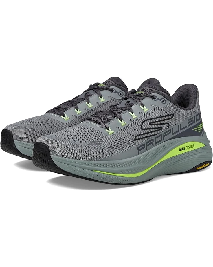 - Step into the future of comfort and performance! The SKECHERSยฎ Max Cushioning Propulsion combines cutting-edge technology with unbeatable ease. Featuring Slip-Ins for effortless wear, Goodyearยฎ rubber for enhanced grip, and Max Cushioningยฎ for ultimate shock absorption, these sneakers are built for those who demand more. The Natural Rocker Technologyยฎ propels you forward with every step, while Ultra Flightยฎ midsole keeps you light on your feet. With a textile and synthetic upper, a cozy textile lining, and a machine washable design, these shoes offer both style and convenience. Lace up and experience the next level of athletic innovation!