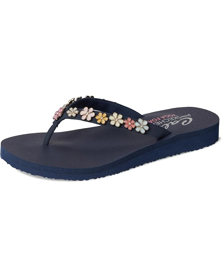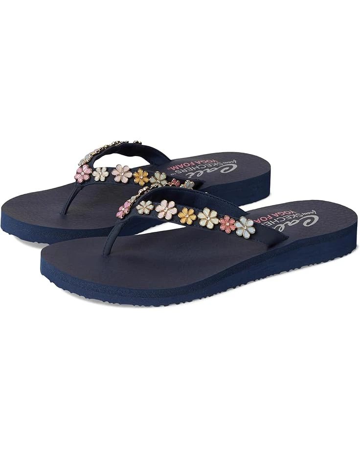 - Pedal in on stylish comfort wearing the SKECHERS® Meditation – Daisy Crush sandals. These vegan thong sandals feature an EVA upper with flower charm embellishments and a cushioned yoga foam® comfort footbed. The foam insole and synthetic rubber lining provide added comfort. Crafted with 100% vegan materials, these slide sandals are perfect to pair with casual outfits and dresses.