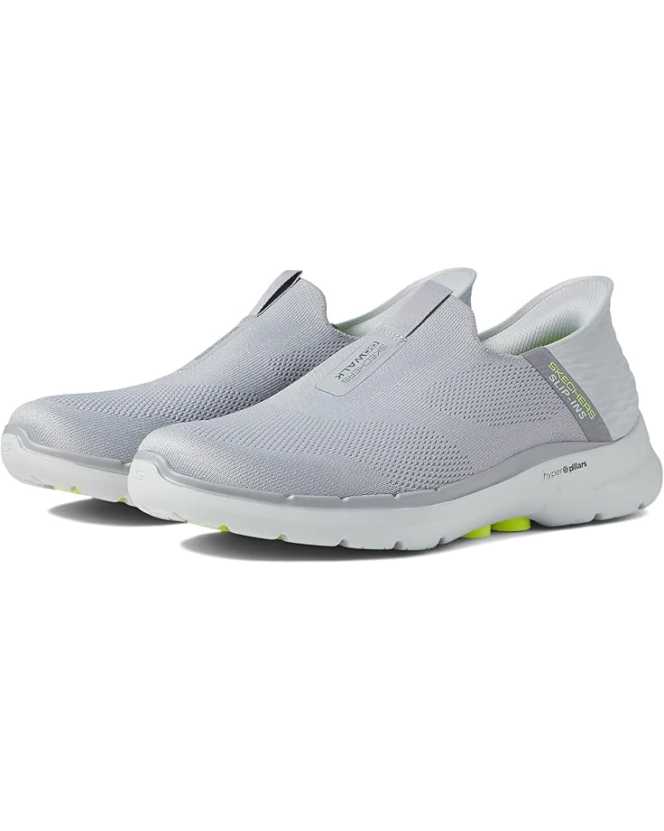 - Go handsfree and step into supportive comfort wearing Skechers Slip-ins: GO WALKยฎ 6 – Easy On. This slip-on features an engineered knit and synthetic upper with a Skechers Slip-ins molded heel panel, a Skechers Air-Cooled Memory Foamยฎ insole, lightweight ULTRA GOยฎ cushioning midsole and high-rebound Hyper Pillar Technology for added support.
