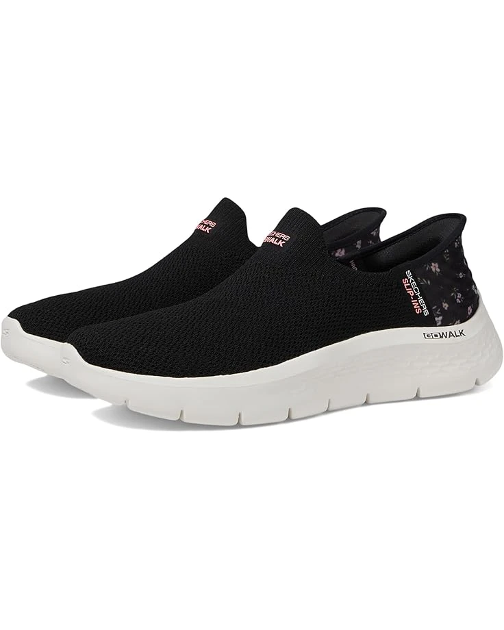 - Feel comfort like never before when you step out wearing the SKECHERS® Performance Go Walk Flex Sunset Rose Hands Free Slip-Ins. Topped with a knit mesh upper with a laceless design and a floral print on the heel counter, these shoes offer next-level comfort with its lightweight and responsive ULTRA GO® cushioning and Skechers Air-Cooled Memory Foam® cushioned comfort insole. With the Multi-surface stabilized and flexible traction with Flex Pillars™, the sneakers are ideal for cross-training activities.