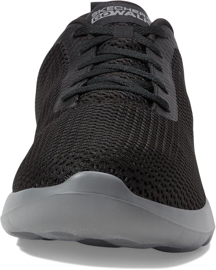 - The SKECHERS® Go Walk Max – 54601 sneaker offers maximum comfort and cushioning with an athletic design, a textured mesh fabric upper, and synthetic overlay at the laces for added durability.