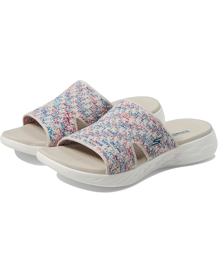 - Unleash the power of innovative design and ultimate comfort wearing the SKECHERS® Performance On-The-Go 600 – Radiate. Crafted from space dye knit upper, and Goga Mat contoured footbed, this pair of lightweight, responsive 5GEN cushioning slip-on’s features open round toe, eye-print on the upper, and brand detailing on the footbed.
