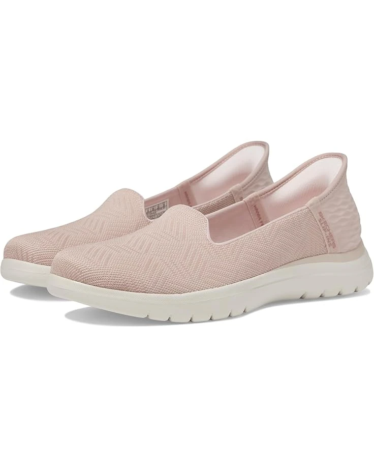 - Step into convenient walking comfort wearing SKECHERS® Performance On-The-Go Flex – Clover Hands Free Slip-Ins footwear. Crafted from polyester upper, the footwear has laceless design and exclusive Heel Pillow™, Skechers Air-Cooled Memory Foam insole. A lightweight ULTRA GO cushioning and Flex Pillars offer added support while plain toe and hands free slip-in design provides easy fit; making it ideal for indoors or outdoors.