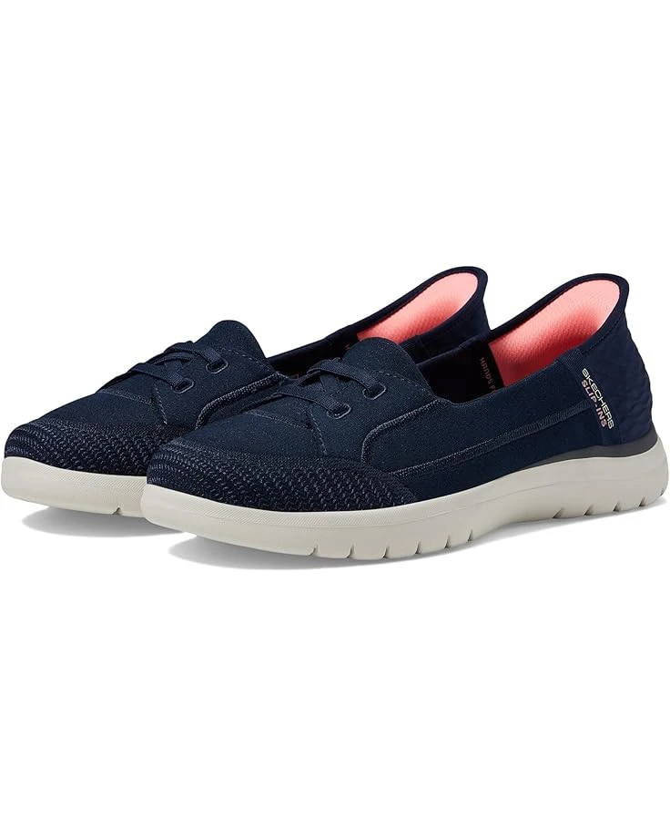 - Enjoy an effortless blend of style and comfort as you step out wearing the SKECHERSยฎ On-The-Go Flex – Top Notch Hands Free Slip-Ins footwear.