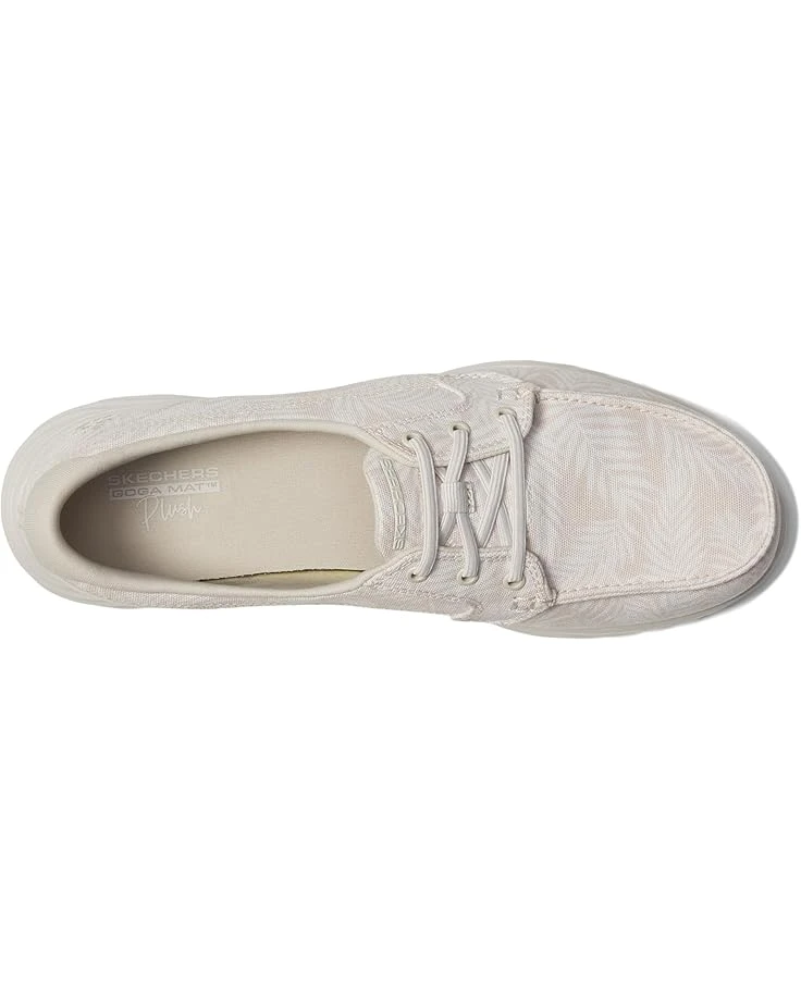 - The SKECHERSยฎ Performance On-The-Go Ideal – Villa is known for its lightweight and responsive ULTRA GOยฎ cushioning in combination with Goga Matยฎ Plush comfort insole. Ideal for everyday use, these shoes boast a palm-printed canvas upper with stretch lace-up closure and a classic round moc toe silhouette.