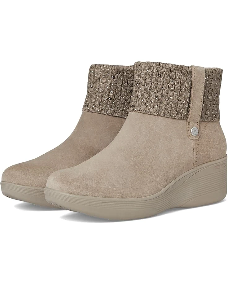 - Start your day with the SKECHERSยฎ Pier-Lite – Fall Stunner Martha Stewart- Hands Free Slip-Ins. This casual ankle bootie features a suede upper with a rhinestone fold-over collar, a shock-absorbing wedge midsole, and a Skechers Air-Cooled Memory Foamยฎ insole.